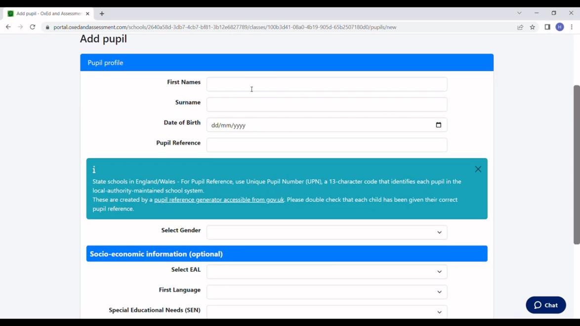 Registering pupils on the OxEd platform
